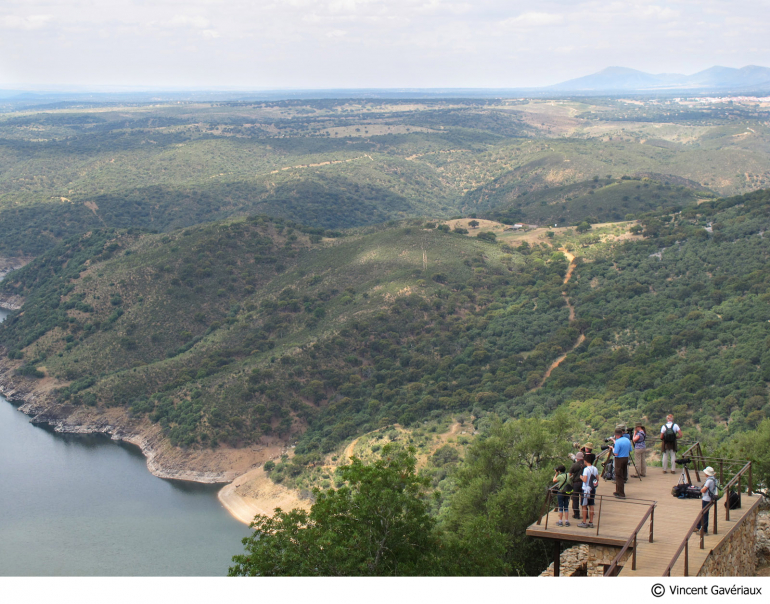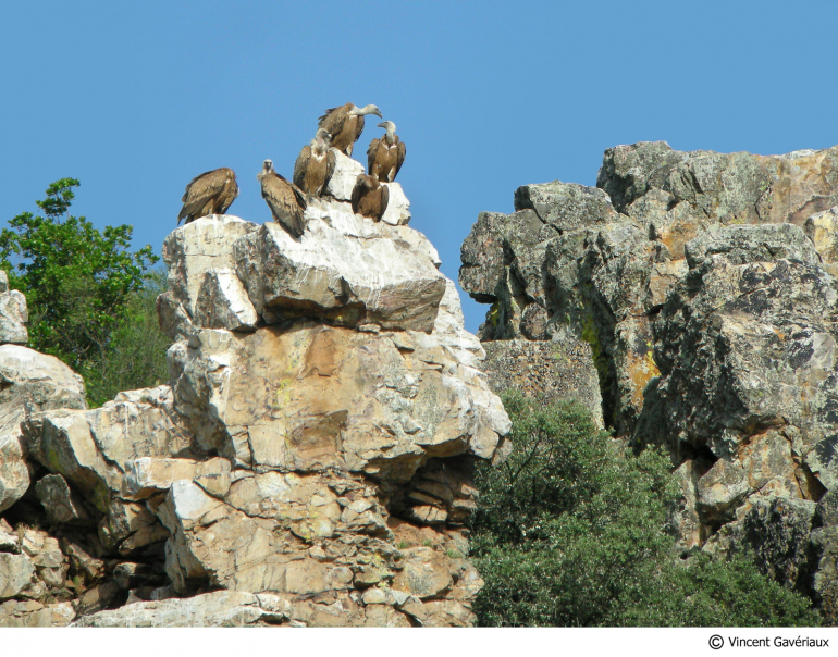 Jour 3 - Nouvelle journée dans le parc de Monfragüe.Promenade dans le « bosque mediterraneo ». Observation de plusieurs espèces nichant dans les falaises : Vautours fauve et percnoptère, Merle bleu, Cigogne noire, Faucon pèlerin, Grand Corbeau, Crave à bec rouge, Bruant fou...