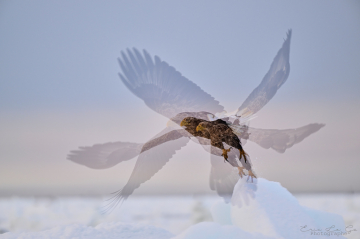 JOUR 8Le matin très tôt vous embarquez sur un bateau pour aller admirer le lever de soleil sur la mer de glace. C'est l'endroit idéal pour voir la pêche des pygargues de Steller et des pygargues à queue blanche. Les goélands et les corbeaux noirs sont aussi présents pour se disputer la pêche.