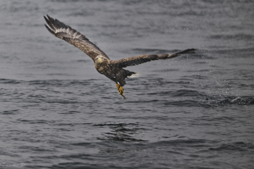JOUR 5Le matin très tôt nous embarquons sur un bateau pour aller admirer le lever de soleil sur la mer de glace. C'est l'endroit idéal pour voir la pêche des pygargues de Steller et des pygargues à queue blanche. Les goélands et les corbeaux noirs sont aussi présents pour se disputer la pêche.