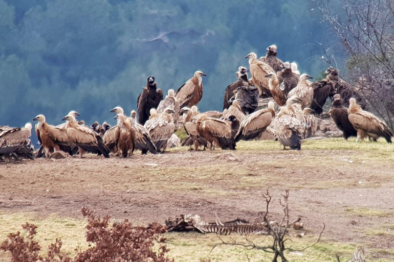 Cette aire de nourrissage permet d'observer selon les circonstances des Vautours fauves et moines, mais également le Pygargue à queue blanche, les Aigles impérial et criard, le Milan noir, qui sont charognards occasionnels.  Sur une dizaine de visites de groupes Nature et Terroir, le loup fut observé deux fois.