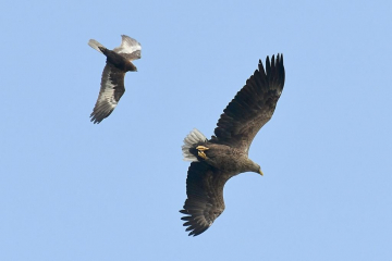 Jours 6, 7 et 8 Nous passerons deux journées dans le Parc national du delta de l'Evros, qui est le principal site d'hivernage de la population européenne d'Oie naine, mais qui est difficile à observer. Durant les hivers froids, un grand nombre d'oies viennent dans la région, notamment la Bernache à cou roux, l'Oie rieuse et l'Oie des moissons de la toundra. Parmi les autres espèces d'oiseaux recherchées, on peut citer le Flamant rose, le grand Butor, le Pélican frisé, le Cormoran pygmée, le Cygne chanteur, le Cygne de Bewick (ssp. Bewickii), le Tadorne casarca , le Fuligule milouinan, le Pygargue à queue blanche, l'Aigle criard, le Milan noir, ainsi que de nombreux canards, mouettes et échassiers et des vols immenses d'étourneaux sansonnets allant au dortoir. Les environs du delta permettent également souvent d'observer trois varités de buses différentes; la Buse féroce, la Buse variable et la Buse de Russie. Le Faucon émerillon y est fréquent, et nous gratifiera peut-être d'une chasse alliant détermination et intrépidité. Mais en matière de chasse, celle du pygargue est très spectaculaire: elle commence par un vol indolent, et soudain, en quelques battements d'ailes d'une puissance incroyable, son accélération est fulgurante. Il plonge alors vers un groupe d'oies et de canards qui explose en tous sens, provoquant une panique généralisée.