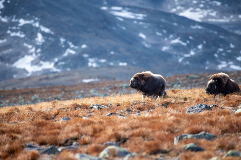 JOUR 2 À 4Sorties avec le guide local sur le Parc du Dovrefjell. Notre priorité sera la recherche et l'observation des boeufs Musqués. Le but étant de multiplier nos chances de rencontre avec cet animal mythique du parc, nous parcourrons le parc en voiture et à pied pour chercher les meilleurs secteurs et les meilleures prises de vue possibles. Chaque rencontre sera l'occasion de travailler nos images et nos techniques photographiques et d'approche. Nous découvrirons les paysages uniques de toundras enneigées et les espèces qui y affrontent l'hiver.