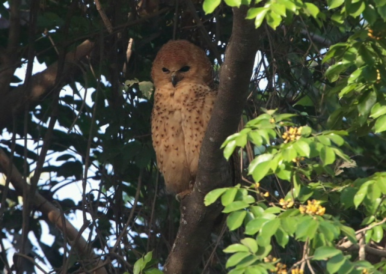 Yaya, notre guide local, est particulièrement doué pour détecter les oiseaux bien camouflés ! On devrait être servi avec les Grands-Ducs !