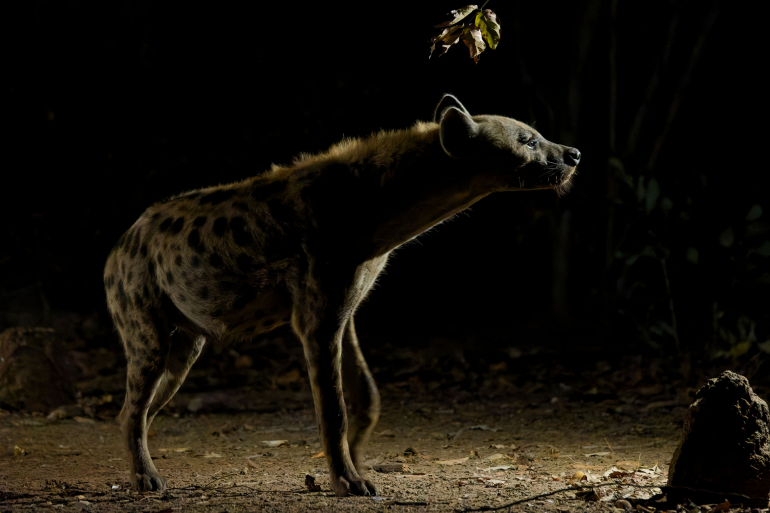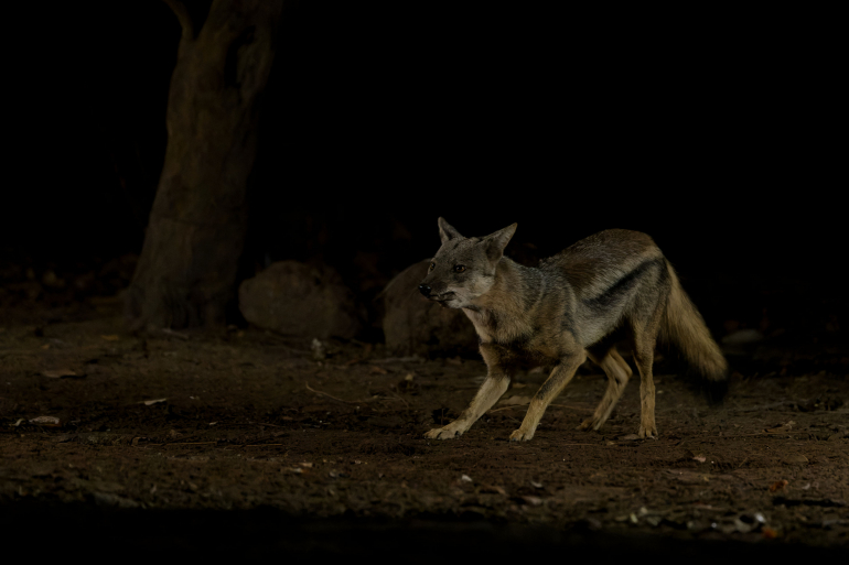 Affûts nocturnes : Les affûts sont aussi praticables la nuit grâce aux spots infra-rouges et aux spots de lumière chaude-rouge qui n'effraient pas les animaux. L'observation des galagos, genettes, civettes, porcs-épics, hyènes, chacals, oryctéropes, grand-ducs ou autres grands félins nocturnes est facilitée par nos jumelles thermiques et infra-rouges.