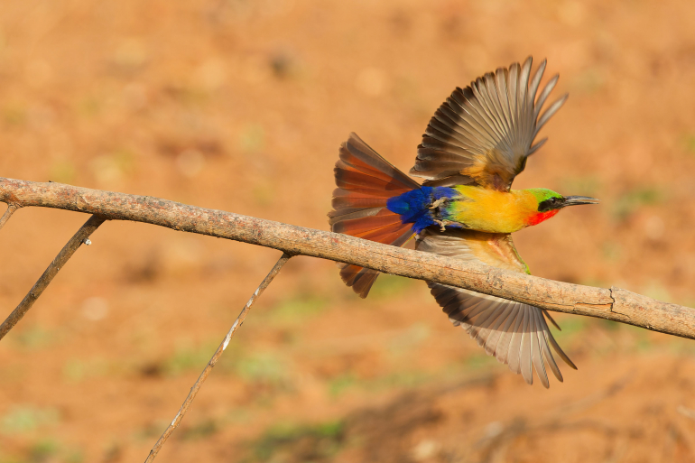 Durant l'après midi, nous irons essayer de photographier les rapaces qui survolent et viennent se poser le long du fleuve Gambie, mais aussi le martin géant, les nombreux guêpiers, le pygargue vocifère, le rare grébifoulque ainsi que les très nombreux crocos. Fin d'après midi, nous partirons en pirogue le long du fleuve Gambie afin de photographier une colonie de guêpiers écarlates et profiter du couche de soleil inoubliable. Repas du soir et nuitée au Niokolodge.