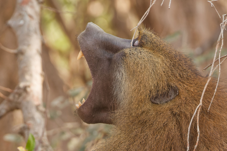 Jour 7Petit déjeuner. Les babouins sont très nombreux autour du lodge et dans la canopée. Ils ont des comportements très photogéniques, nous essayerons de les approcher et des les comprendre. Diner.