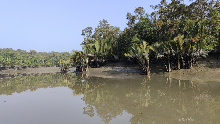 JOUR 2 AU JOUR 5Durant ces quatre journées, nous parcourrons ce gigantesque delta recouvert de la plus grande mangrove du monde. Celle immense mangrove intertidale de la réserve forestière est une mosaïque d'îles de différentes formes et tailles, perpétuellement baignées d'une eau saumatre qui lors de la marée montante s'insinue dans un impressionnant labyrinthe infini de voies d'eau. La progression lente du bateau permettra de multiples observations et photographies d'oiseaux et de mammifères. La réserve forestière (Sundarbans veut dire forêt -bans- de mangrove -sundri) abrite 49 espèces de mammifères et 315 espèces d'oiseaux (voir liste dans la rubrique "A savoir"). Parmi les mammifères, le plus prestigieux, mais difficile à voir, est le Tigre du bengale. Sa population est estimée à 400-450 exemplaires. C'est la seule population au monde dans un habitat de mangroves pour cette sous espèce. Il faut également mentionner les Dauphins du Gange et de l'Irrawady (ou orcelle).