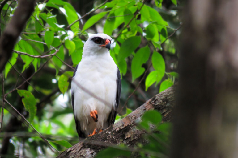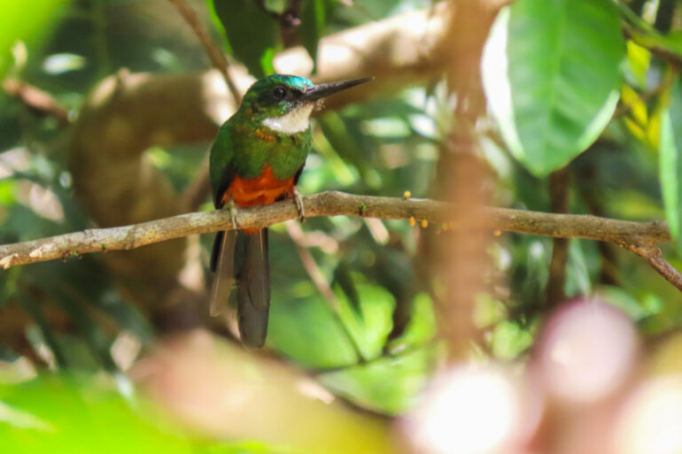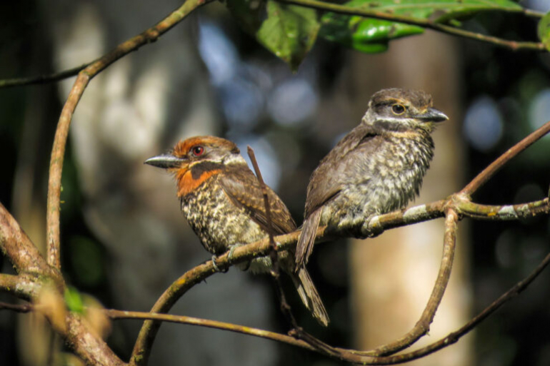 Nous reprenons ensuite la route pour nous enfoncer plus profondément au coeur de la forêt amazonienne, non sans marquer un arrêt sur un lek du spectaculaire Coq-de-roche orange (Guianan Cock-of-the-rock). Ce cotingidé emblématique se rassemble dans des arènes appelées leks, où les mâles exécutent des parades extravagantes pour séduire les femelles. Nous arrivons ensuite à l'Atta Lodge, situé au coeur d'une immense zone de conservation de plus d'un million d'hectares, protégée par l'Iwokrama Rainforest. Le site est notamment réputé pour son Canopy Walkway, un ensemble de trois plateformes installées dans la canopée, reliées par des passerelles suspendues, dont la plus haute culmine à 30 mètres au-dessus du sol. Ces plateformes offrent des points de vue uniques pour observer des espèces habituellement difficiles à voir correctement, et constituent un excellent site pour la photographie.